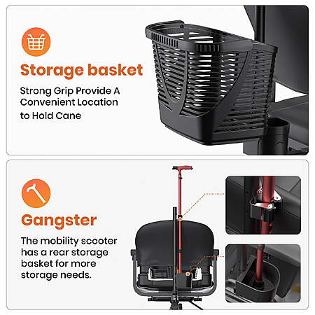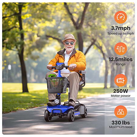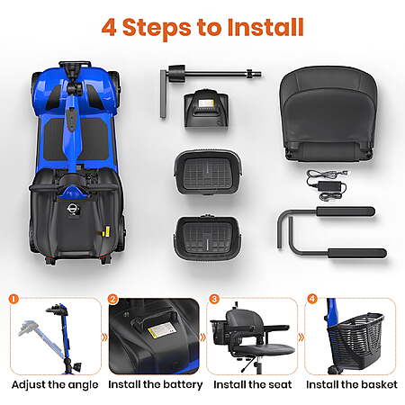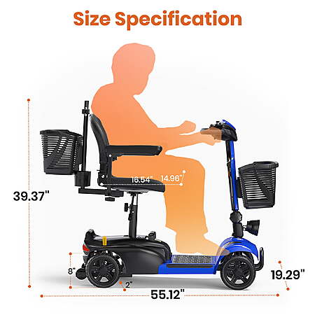 | Product Description: | SACVON 4 wheel mobility scooter for senior is your best choice. This foldable mobility scooter has everything you need, convenient and comfortable. Whether for personal use or as a gift, it is your best choice.This motorized scooter for senior adopts a four-wheel design, has excellent stability and balance, and can drive safely on various terrains. It is equipped with powerful 250W dual motors and LED lights, which can effortlessly overcome slopes and uneven roads, and it is suitable for indoor and outdoor use. This electric scooters for senior is compact and maneuverable, and can easily pass through narrow doors and crowded spaces, ensuring unrestricted access to any place. The design of SACVON seniors scooter fully considers the comfort of the user. Its seat is very comfortable, with adjustable height and armrests, ensuring personalized and ergonomic sitting posture. The intuitive control panel of SACVON electric scooter for adults allows users to easily adjust the speed and monitor the battery life, providing a seamless user-friendly experience.We have equipped the walker with a bracket that can place crutches so that users can have a suitable place to place them when driving SACVON 4 wheel elderly scooter.The adjustable wrap-around handle that conforms to ergonomics has received widespread praise from those with limited hand flexibility. There is also a USB charging port on the handle,which can reduce the inconvenience of bending over and reaching out.The long-lasting, rechargeable battery (24V 12AH sealed lead-acid battery) can travel more than 12.5 miles on each charge. It also has a comfortable rotating seat that can support up to 330 pounds. Core Advantages Dual Baskets & Cane Holder SACVON mobility scooter features front and rear baskets for storing essentials like medicine, glasses, wallets, or groceries, plus the cane holder behind the seat that doubles as an umbrella organizer—perfect for daily travel needs. Easy-Fold Design This electric scooter features a user-friendly folding mechanism. Just remove the battery and seat to fold it into a compact size in three quick steps. Ideal for older adults who need a motorized scooter that fits easily in the car, at home, or on public transport. Powerful Dual 250W Motors Equipped with dual 250W motors, this mobility scooter for adults handles different terrains with stability and safety. It supports up to 330 lbs and ensures a smooth ride indoors or outdoors—day or night—with integrated LED lighting. Adjustable Seat & Ergonomic Handlebars Designed for personalized comfort, the adjustable seat and armrests adapt to different body types. The ergonomic handlebars on this motorized scooter for adults offer easy control and even include a USB port for convenient device charging. Battery & Warranty Package This mobility scooter runs on a dependable 24V 12AH sealed lead-acid battery, known for its 3–5-year lifespan. We back your purchase with a 1-year warranty and responsive 24-hour customer service to ensure ongoing support. Specifications: Weight Capacity: 330 lbs Top Speed: 3.7 mph Max Climbing Angle: 15° Range: >12.5 miles Dimensions: 55.12" x 19.29" x 39.37" Folded Size: 42.52" x 18.11" x 16.93" Wheels: 8" x 2" Motor: 250W Battery:24V 12Ah Charger Time: 8-10 H Color: Red / Blue / Black / Silver |