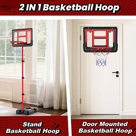 - 2-IN-1 Basketball Hoop for Boys - Kids get a 2-in-1 mini basketball set with options of stand or wall/door mounted. Not only can be shotting outdoor or indoor but also hang on common sized doors or walls indoor for playing. Enjoying basketball games anywhere and anytime. Ideal for both indoor and outdoor use, it allows kids to enjoy basketball in any setting, offering versatility and enjoyment in every game.