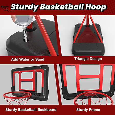 - High Quality & Sturdy Design - Our indoor basketball hoop is extremely durable and designed with Non-Toxic ABS Plastic and lightweight metal for resistance against breakage. The triangle design of the base and pole enhances the stability of the basketball hoop. Please fill the base with water or sand to the base further reduces any shaking before playing.