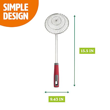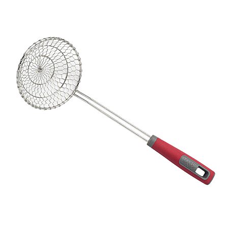 $6.5*:Tasty Stainless Steel Round Wire Skimmer, Comfort Grip Handle for Safe Scooping, Skimming and Serving, 5" Diameter, Red