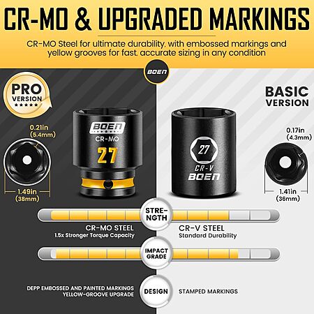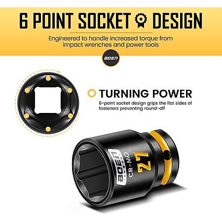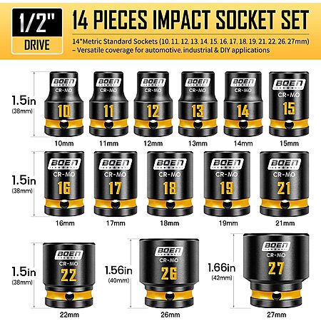 Prime Members: 14-Piece BOEN 1/2" Drive CR-MO Impact Socket Set (10mm-27mm) $22.79 + Free Shipping