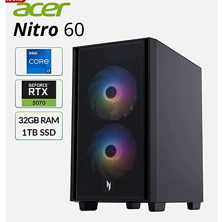 Acer Nitro 60 Gaming Desktop (Cert. Refurb): i7-14700F, RTX 5070, 32GB DDR5, 1TB SSD $1199.99