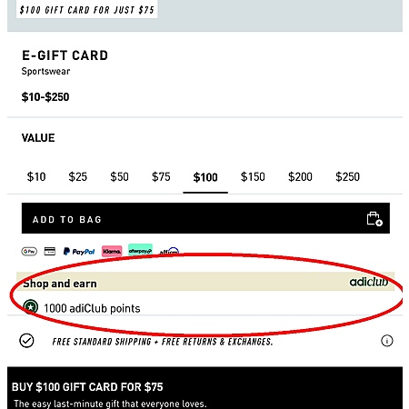 Gift cards may only be redeemed toward the purchase of eligible goods provided by adidas at a physical adidas store or on adidas.com.