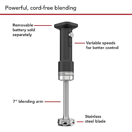I was in the market recently for a hand blender, and even though I hate the idea of a corded version due to the cord getting in the way, I went with KitchenAid Variable Speed Corded Hand Blender KHBV53 (https://www.amazon.com/dp/B0BWNXZWHJ currently $44.99 with Prime). The battery version gets bogged down with thicker semi-solids, the corded version seemed more powerful to me. YMMV.