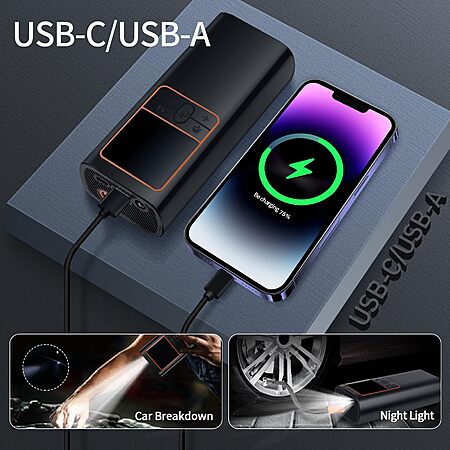 LAMONKE Portable Cordless 150PSI Tire Inflator Air Compressor $14.99 + Free Shipping w/ Prime or on $35+