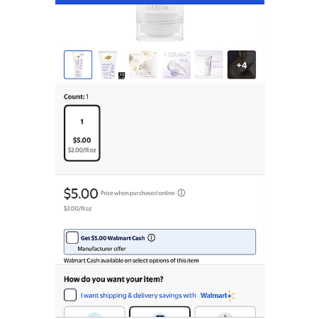 Walmart has the Dove Whole Body Deodorant pH Balancing Cream Raspberry & Rose Aluminum Free, 2.5oz free after receiving $5 in Walmart Cash for the $5 purchase (cash -> Walmart Cash)