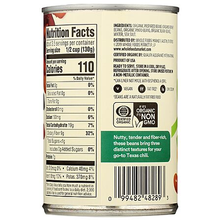 Model: 365 by Whole Foods Market, Organic Bean Trio (Kidney, Pinto, & Black Beans), 15 Ounce