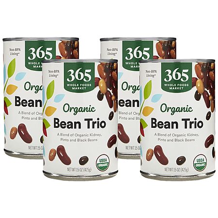 Amazon [amazon.com] has 15-Oz 365 by Whole Foods Market Organic Bean Trio (Kidney, Pinto, & Black Beans) for $0.87. Shipping is free w/ Prime or on $35+.