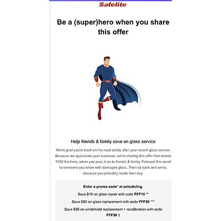 **Offer valid only for windshield repairs when scheduling on safelite.com. Offer subject to change.