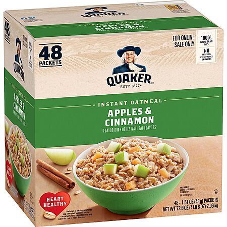 Quaker Instant Oatmeal, Apples and Cinnamon, Individual Packets (48 Count of 1.51 oz Packets), 72.48 oz~$11.30 With S&S @ Amazon