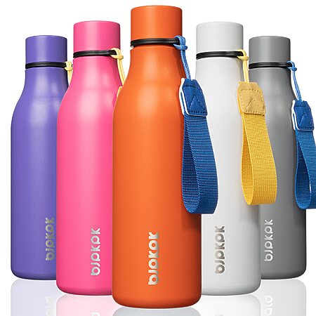 BJPKPK Insulated Water Bottles, 18 oz Stainless Steel Water Bottle with Strap, Various Colors from $7.41+tax