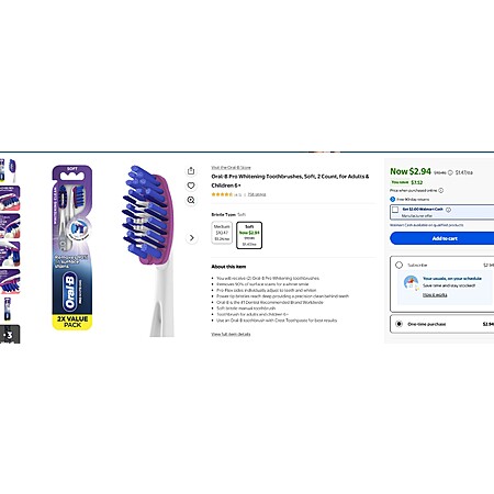 STILL AVAILABLE YMMV $2 WM Cash + Oral-B Pro Whitening Toothbrushes, Soft, 2 Count $2.94 YMMV