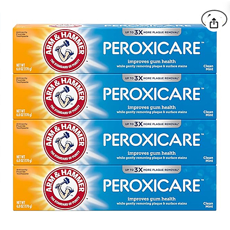 ARM & Hammer Peroxicare Toothpaste for Gum Health, Baking Soda Toothpaste, Clean Mint, 6.0 oz (Pack of 4) - $10.26