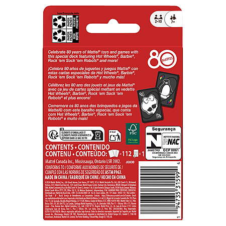 $5.38 + $4 Walmart Cash - UNO Mattel 80th Ruby Red Card Game of Matching Colors and Numbers for Kids, Adults & Family Night