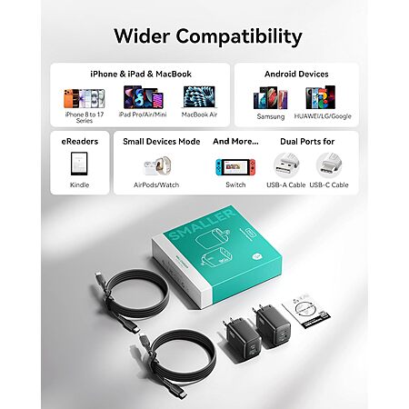 - Ultra-Compact Design: It has dual ports and is 30% smaller than the original 30W charger with a foldable plug. It fits any pocket and is your perfect travel partner!