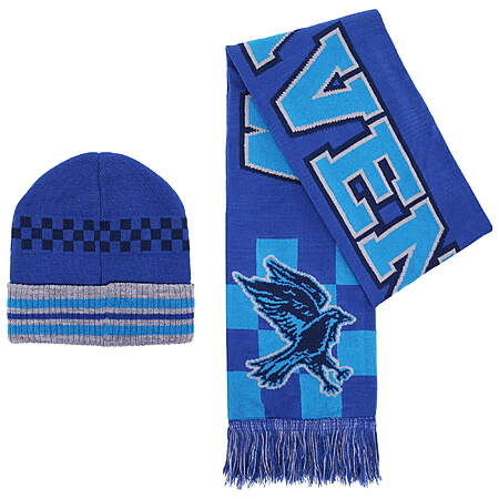 House Affiliation: This Harry Potter Ravenclaw collegiate winter hat and scarf set features vibrant blue and grey Ravenclaw colors and an embroidered "Ravenclaw" on the beanie's cuff.