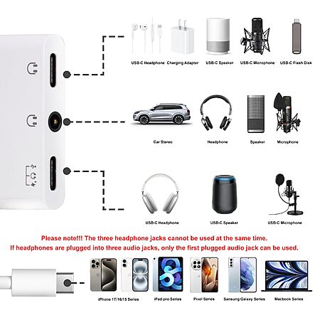 3-in-1 60W PD Fast Charging USB-C Aux Splitter $4.99 + Free Shipping w/ Prime or on $35+