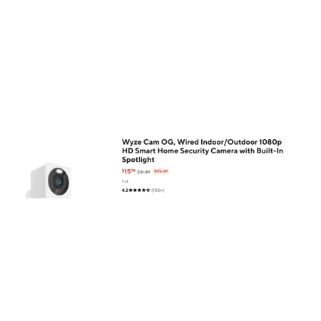 Wyze Cam OG, Wired Indoor/Outdoor 1080p HD - DoorDash $15.81