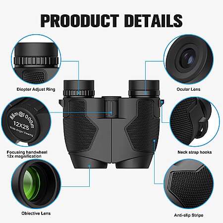 Binoculars 12x50 for Adults and Kids Night Vision Binoculars Compact Binocular Waterproof Binocular Wide Field of View for Bird Watching,Hiking,Hunting $39.99
