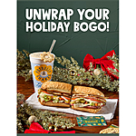 'Tis the season for extra cheer (and extra sandwiches). Buy a Big or Original Sandwich and get an Original FREE. Enjoy with your favorite sandwich - or wrap it up (literally!) with a wrap. Just make sure you order fast; this gift doesn't last long!