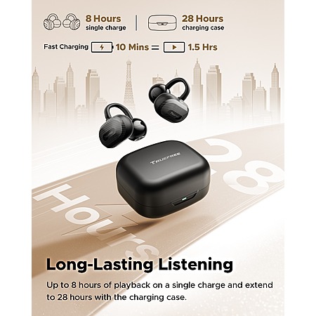 Model: truefree C10 Clip-On Wireless Earbuds, Open-Ear Earphones, Bluetooth 5.4, 12mm Driver with Spatial Sound, 28H Playtime, IPX5 Water-Resistant, AI-ENC Clear Calls, Dual Connection, App Customizable