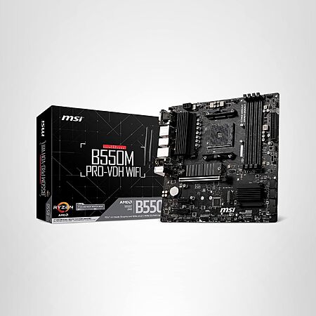 Model: MSI B550M PRO-VDH WiFi ProSeries Motherboard (AMD AM4, DDR4, PCIe 4.0, SATA 6Gb/s, M.2, USB 3.2 Gen 1, Wi-Fi, D-SUB/HDMI/DP, Micro-ATX)