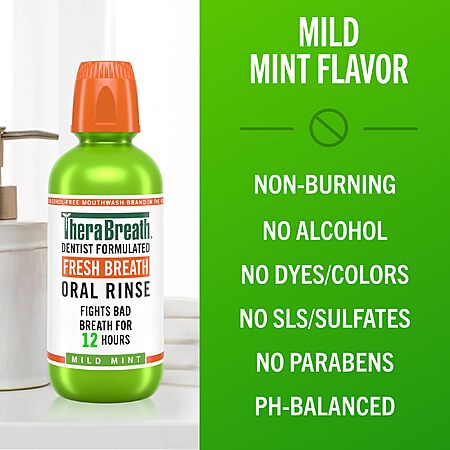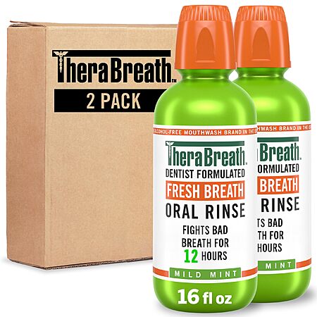 4x TheraBreath Fresh Breath Mouthwash - Mild Mint, 16 fl oz (Pack of 2) for $22.95