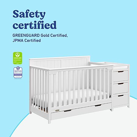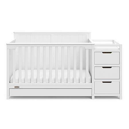 Graco Hadley 5-in-1 Convertible Crib & Changer (White) – GREENGUARD Gold Certified, Fits Standard Crib Mattress, Converts to Toddler Bed and Full Bed, 4 Adjustable Mattress Heights on sale for