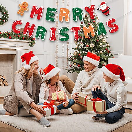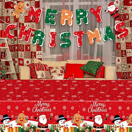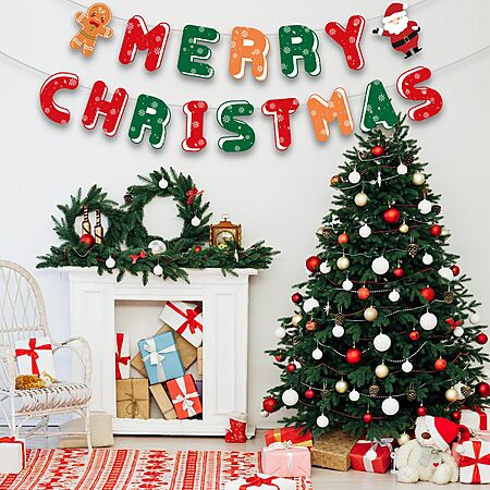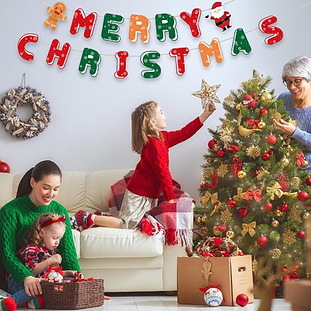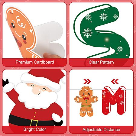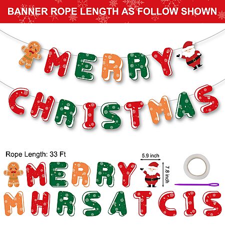 Merry Christmas Decorations Banners - Paper Christmas Banner, Santa Claus Reindeer Sign Garland Backdrop for Winter Xmas Indoor Outdoor Home Office $3.99