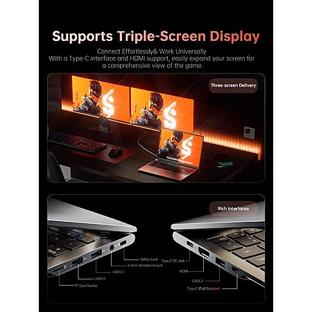 - 16GBx1 DDR5-4800 Memory (2 SODIMM Slots, 64GB Max)