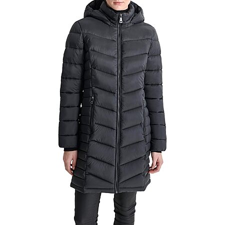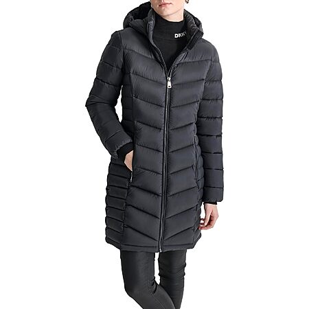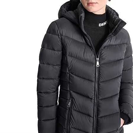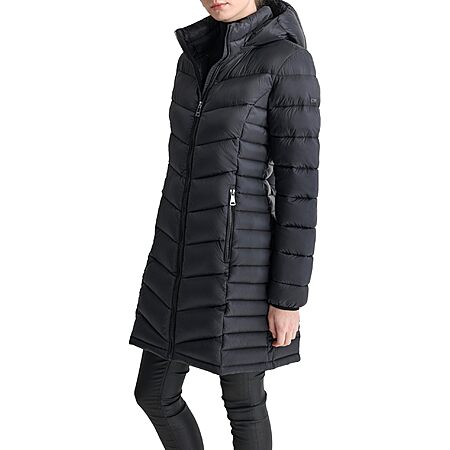 DKNY Women's Hooded Light-weight Puffer Jacket, Black (Med/XL) $69.99