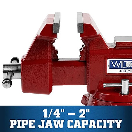 Wilton's Utility and Utility HD Bench Vises feature a 30,000 psi gray cast iron body and movable jaw with a 60,000 psi ductile iron base. They also include a large anvil, built-in pipe jaws and a 360° locking swivel base. The dual lock-downs and 4 mounting posts ensure maximum stability while in use.
