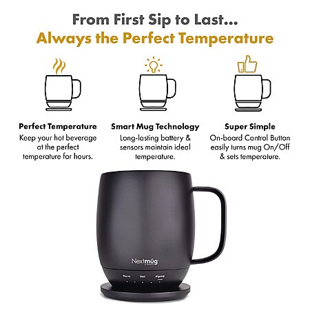Nextmug by Nextboom via Amazon [amazon.com] has 14-Oz Nextmug Temperature-Controlled Self-Heating Coffee Mug (Various) for $94.95. Shipping is free.