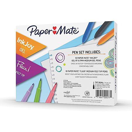 [S&S] $15.05: 28-Count Paper Mate InkJoy Retractable Gel Flair Felt Tip Pens (Assorted Colors) at Amazon