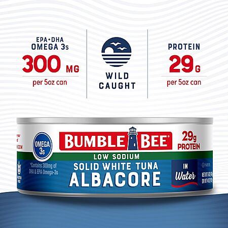 12-Pack 5-Oz Bumble Bee Low Sodium Solid White Albacore Tuna in Water for $15.96 - 20% when you 'clip' the