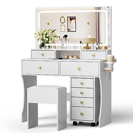 Pamapic Vanity Desk with 8 Drawers & Rolling Cabinet (White) $119.60 + Free Shipping