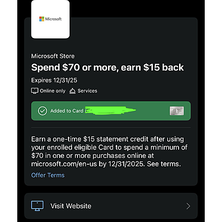 Check your Amex offers, I had a spend $70 get $15 back offer for Microsoft.com