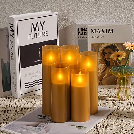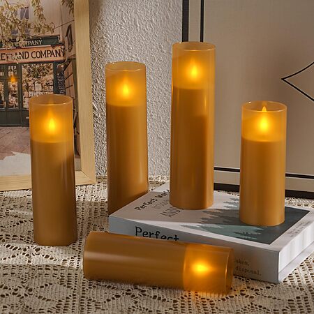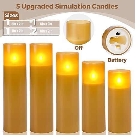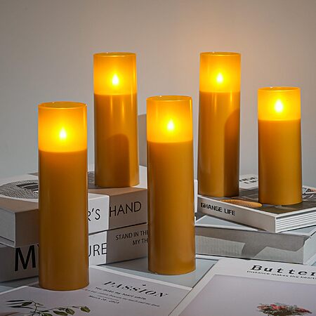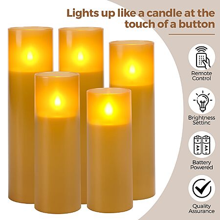 Flameless Candles, Battery Operated Candles, with Remote Control and Timer, White Matte Shell, Set of 5 (H5 6" 7" 8") - $5.80