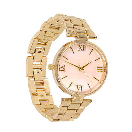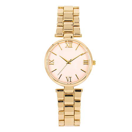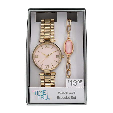 Time and Tru Women's Gold Tone Round Watch and Rose Faux Stone Bracelet Set, 2-Piece $2