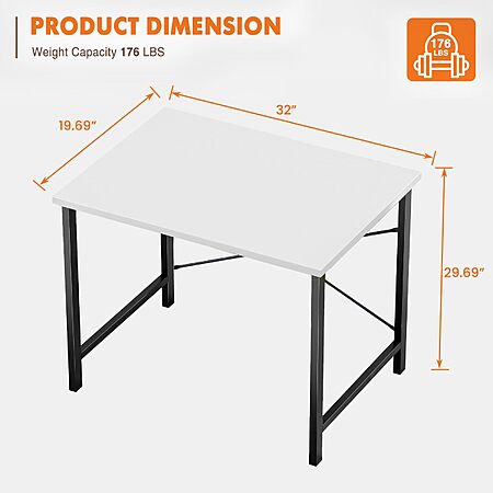 Sweetcrispy Computer Desk, Small Office 32 Inch Writing Work Study Student Teacher Home Bedroom Table with Metal Frame Wood Tabletop - White $19.87