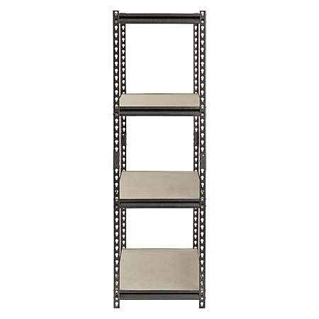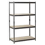 Outfit your space for utility and organization with the Muscle Rack 4-Shelf Steel Shelving, 36"W x 18" D x 60"H. The shelving unit helps you keep your garage, shop or other space neat and tidy. It features industrial-grade, steel construction with a durable and attractive silver-vein finish. The garage storage shelving unit has a Z-beam design that provides strength and rigidity, even when heavily loaded. The versatile unit can be set up vertically as a shelving unit or horizontally as a workbench. Four adjustable metal shelves with particle board decking can each be adjusted in 1-1/2" increments to hold items of various sizes. It includes a rivet-lock design and post couplers to make assembly faster and easier, and it requires no nuts or bolts. The instructions are included to assist you during the assembly process. These shelves are ideal for organizing tools for easy access or for storing shelf-stable food items, art supplies, toys, outdoor equipment and more.