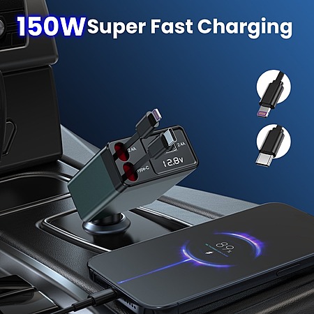 NEXPOW 120W 4-in-1 Car Phone Charger w/ 2x Retractable Cables $8.99 + Free Shipping w/ Walmart+ or $35+