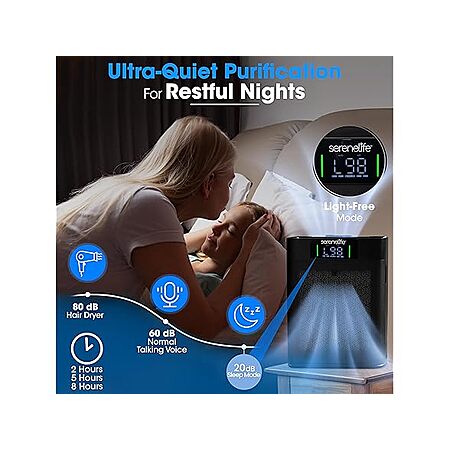 1076 Square Feet SereneLife HEPA Ultra-Quiet Air Purifier for Home w/ Smart WiFi & App Control $49.99 + Free Shipping w/ Prime