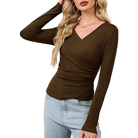 50% off select Women's Long Sleeve Tops (Slim Fitted V-Neck Wrap, Ruched) when applying the promo code below. Discount applies at checkout.