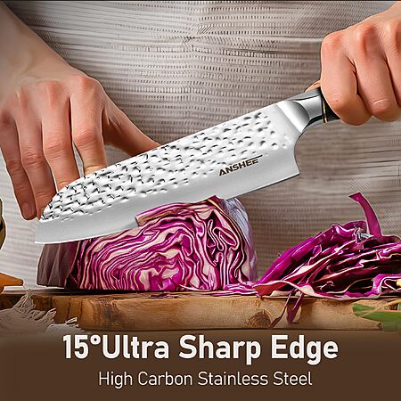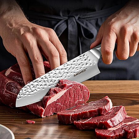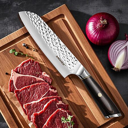 anshee 7 Inch Japanese Santoku Knife with Sheath Gift Box