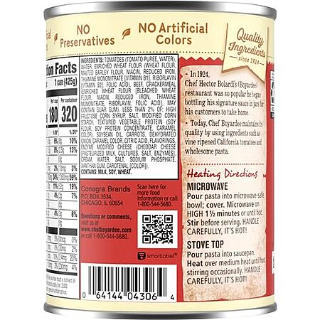 Chef Boyardee Mini Beef Ravioli, Microwave Pasta, Canned Food, 15 oz. (Pack of 5)~$3.90 @ Amazon