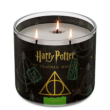 Goose Creek, Harry Potter Deathly Hallows 3-Wick Candle, 14.5oz. Bring the magic of Hogwarts home with this enchanting fragrance blend featuring ancient cedar, forest pine, eucalyptus mist & forbidden moss . Made with a premium soy wax blend, Goose Creek candles quickly fill any space with long-lasting aroma. Loved by Harry Potter fans, these collectible candles create a spellbinding atmosphere in every room. Goose Creek 3-Wick Harry Potter Deathly Hallows Scented Jar Candle, 14.5oz. Ancient Cedar, Forest Pine, Eucalyptus Mist & Forbidden Moss Soy Wax Blend Size: 14.5oz. (411g) Burn Time: 45+ Hours 3-Wick Candle
