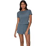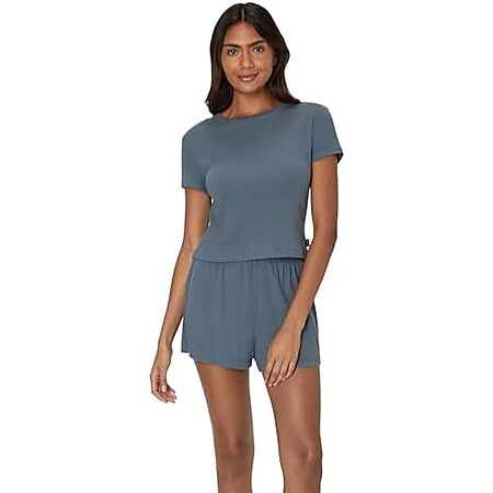 Model: Hanes Women's Originals 2-Piece Lounge, Supersoft Cropped Baby Doll Tee & Sleep Shorts Loungewear Set, Stargazer Grey/Stargazer Grey, Medium
