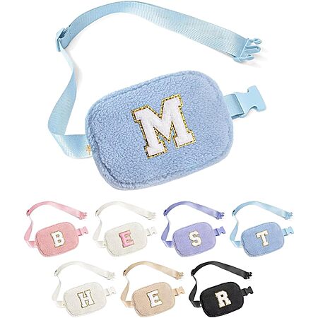 - Personalized initial design: Each fanny pack features hand-stitched letters made from soft cotton terry towel embroidery.