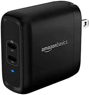 Model: Amazon Basics 36W Two-Port USB-C Wall Charger (18W per port) with Power Delivery PD For Tablets & Phones (iPhone 15/14/13/12/11/X, iPad, Samsung, and more), non-PPS, 2.34 x 2.21 x 1.09 inches, Black